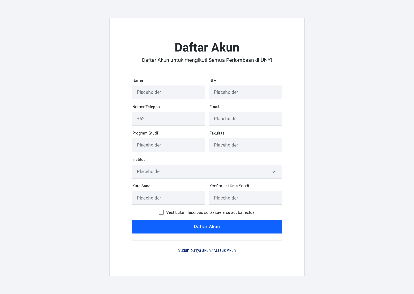 Alur pendaftaran lomba yang dibuat semudah mungkin agar peserta bisa mendaftarkan diri tanpa kesusahan, tanpa mengurangi kebutuhan data dari panitia perlombaan.